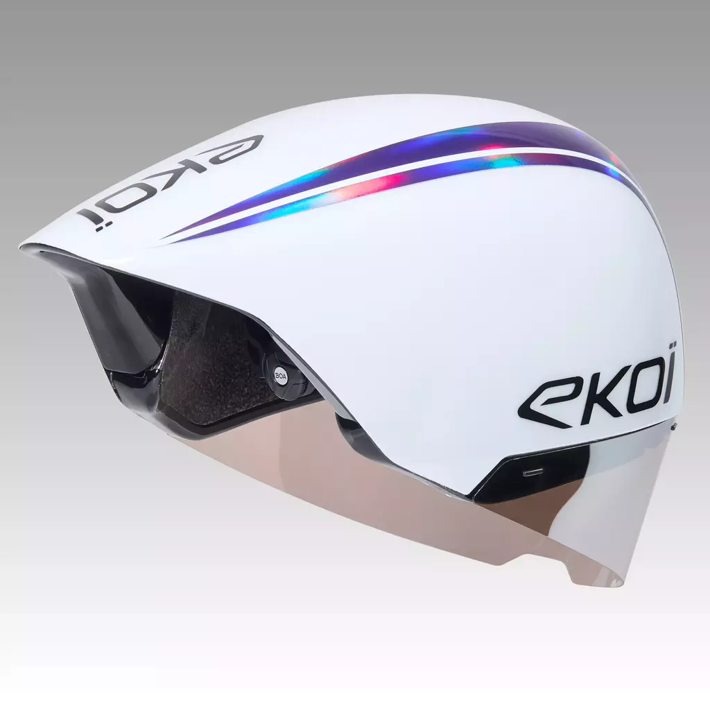The shape of the helmet integrates seamlessly with the top of the shoulders