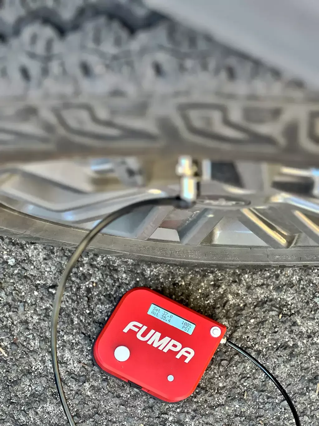 The megaFumpa has been engineered for frequent, reliable use and large volume inflation. Completely portable and weighing just 1.5kg, it will inflate 40 bicycle tyres per charge. It's also very capable when inflating motorbike tyres.